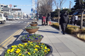 길주로 시청 앞에서 만난 시민 서지혜 씨는 “요즘 미세먼지가 심해 하늘도 뿌옇고 기분이 안 좋았는데, 아침에 활짝 핀 팬지꽃을 보니 기분도 좋아지고 꽃 피는 봄이구나 느껴진다”고 전했다.