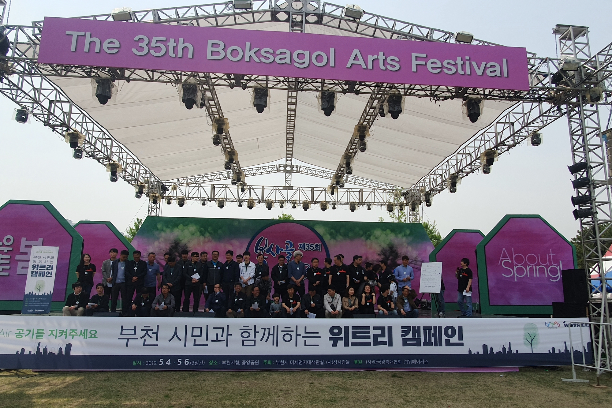 이후 복사골 예술제 개최기간인 5월 6일까지 3일간 중앙공원 야외 홍보부스에서 위트리 캠페인을 알리고 어린이를 대상으로 교구를 활용한 미세먼지 행동요령 안내, 미세먼지를 흡수하는 스칸디아모스 액자 만들기 등 체험행사를 실시했다.