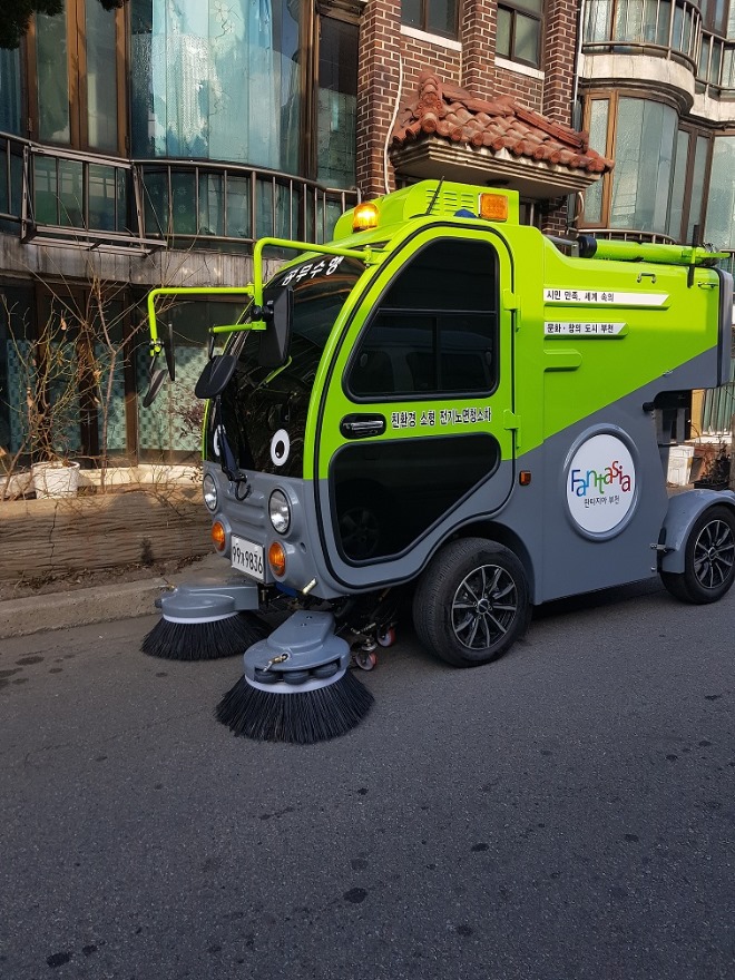 차체가 작아 좁은 도로 청소에 적합한 소형 도로청소차는 차량 앞에 부착된 브러시를 회전해 쓰레기와 흙먼지를 모아 흡입하며 물을 분사해 먼지 발생을 억제한다. 화석연료를 사용하지 않은 전기차로 배기가스 발생이 전혀 없어 친환경적이기도 하다.
