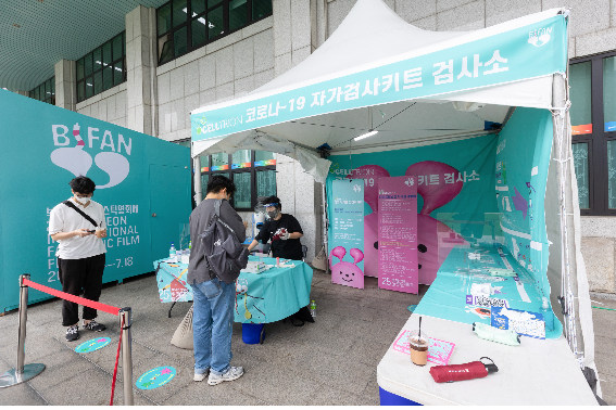 BIFAN은 먼저, CGV소풍에 코로나19 자가검사키트 검사소를 확대해 운영한다. 기존 부천시청 1층 야외(분수대 앞) 배지데스크 옆에 설치한 1개 검사소를 CGV소풍 7층에 추가로 설치한다. BIFAN 관객뿐 아니라 CGV소풍을 찾은 관객들도 희망하면 무료로 검사를 받을 수 있게 운용한다.