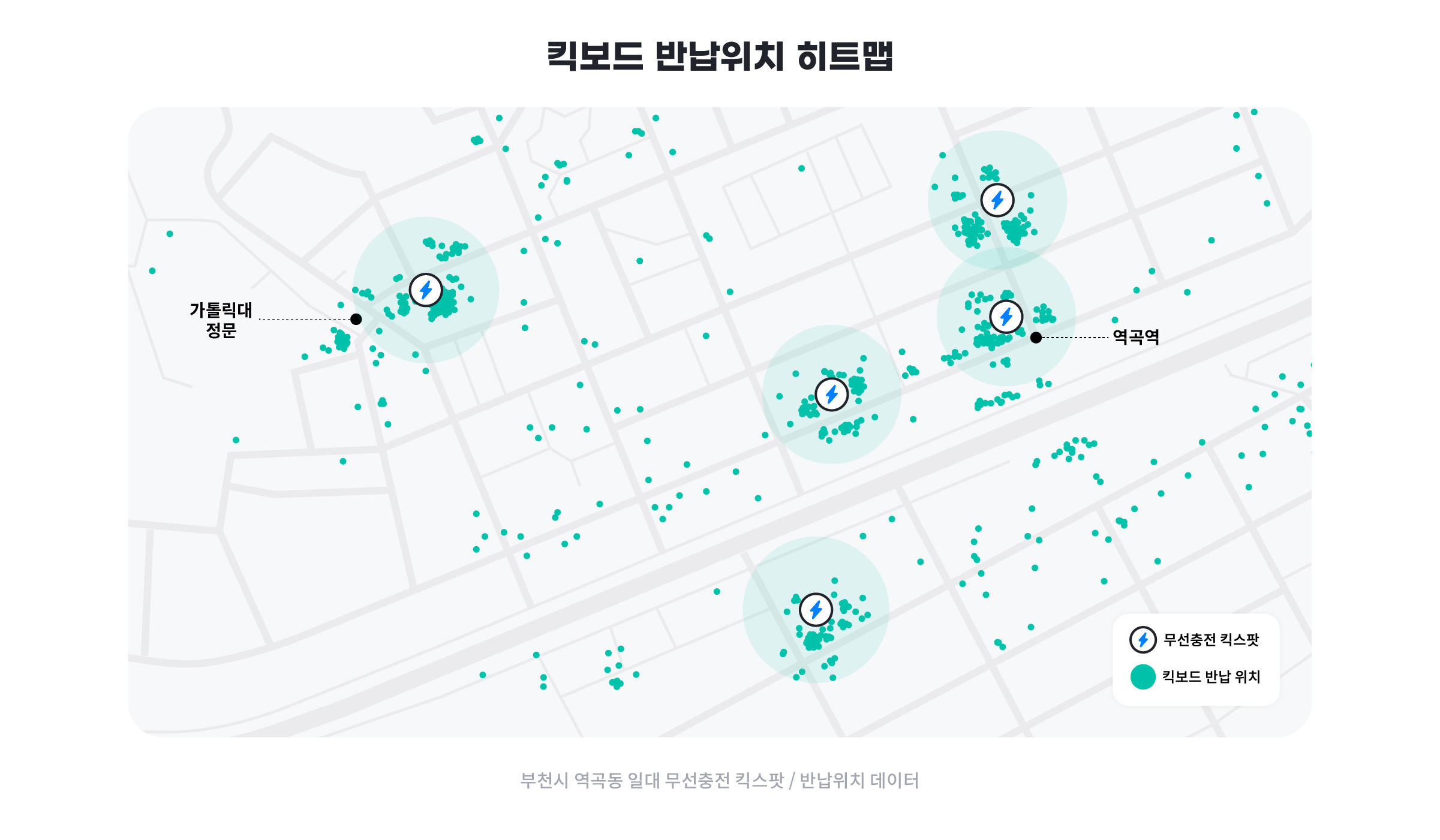 무선충전 킥스팟은 부천시와 스마트시티 챌린지 참여 기업인 올룰로(킥고잉)의 협력을 통해 지난 5월 국내 최초로 부천시 역곡역 부근 5곳에 설치되었으며, 부천시 개인형 이동장치의 질서있는 이용문화 확산을 위해 LG전자가 개발한 무선충전기술이 지원되어 이용자가 서비스 이용 후 거치대에 반납하면 자동으로 충전되는 시스템이다.