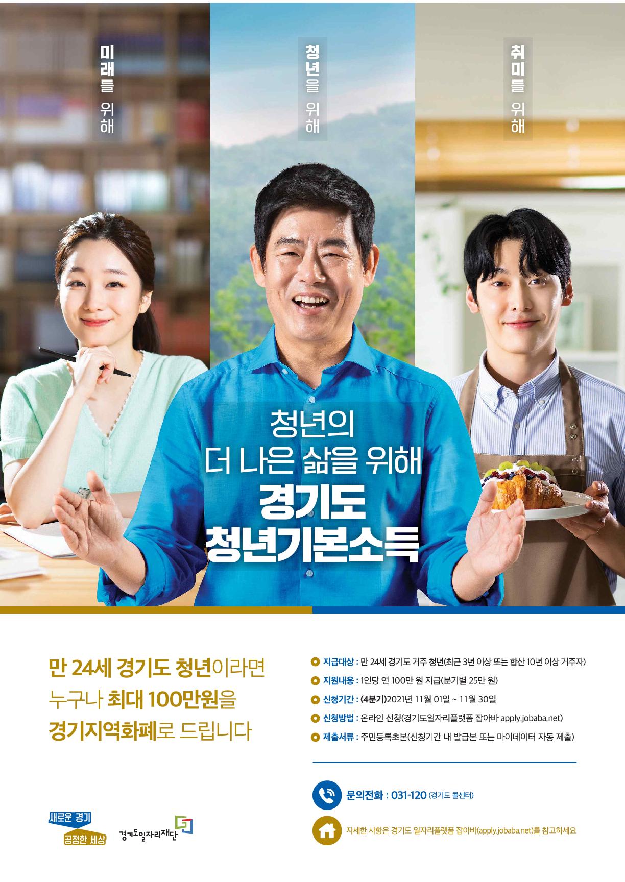 현재 부천시에 거주하는 만 24세(1996년 10월 2일~1997년 10월 1일 출생자) 청년이면서 경기도 내 3년 이상 계속 또는 합산하여 10년 이상 거주요건 충족한 대상자로 경기도 일자리 플랫폼 ‘잡아바’홈페이지(apply.jobaba.net)에서 온라인 신청하면 된다.