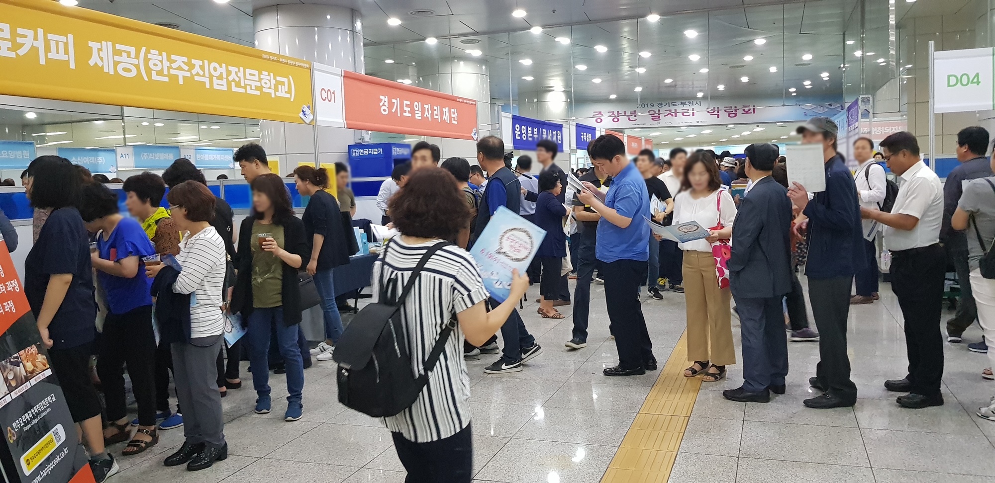 부천시(시장 장덕천)는 코로나19 장기화로 악화된 고용시장의 구인·구직난 해소를 위해 경기도일자리재단과 함께 11월 8일부터 19일까지 일자리박람회를 온라인으로 진행하고 특히, 오는 19일에는 송내사회체육관에서 ‘중장년일자리 박람회’를 오프라인으로 개최한다.
