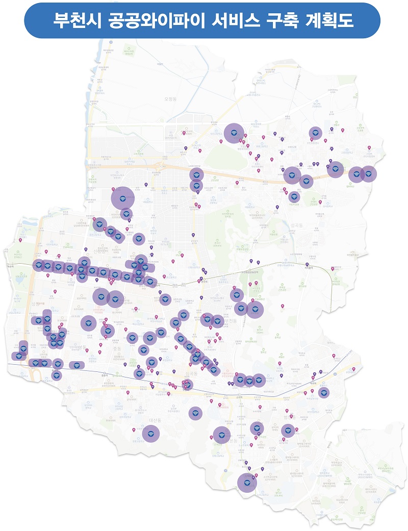 구축의 일환으로 2021년 10월부터 심곡천변, 원미동 일원, 부천 북부역 광장, 상살미 마을, 중앙공원, 송내역(환승센터 포함), 고강동 은행단지 등 7곳과 마을버스 13개 노선(80대)에서 공공와이파이 서비스 운영하고 있다. 이에 3월 말 기준 35만여 명이 서비스를 사용 중이다.
