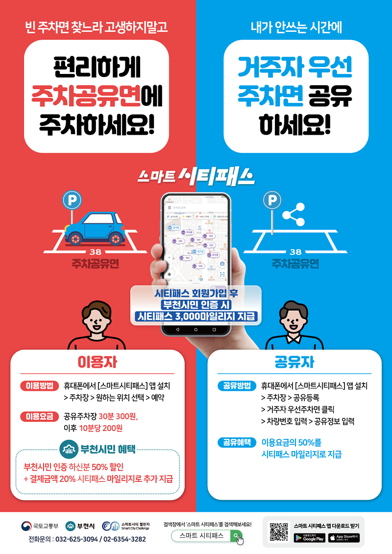 시는 주차공유 서비스 활성화를 위해 공유자에게 주차수익의 50%를 지급하고 부천시민 인증 이용자에게 결제 금액의 20%를 포인트로 환급하는 등 다양한 혜택을 제공하고 있다.