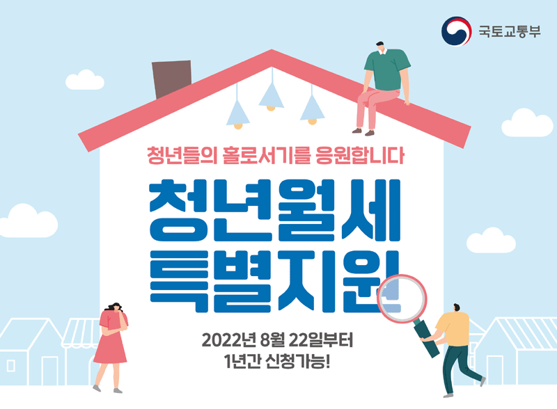 지원대상은 부모와 별도로 거주하는 만19~34세(2022년 기준 1987~2003년생) 청년으로, 임차보증금 5천만원 이하 월세 60만원 이하인 주택에 거주하는 무주택자여야 한다. 월세 60만원 초과자 중 임차보증금 월세 환산액과 월세액을 합산해 70만원 이하이면 신청할 수 있다.