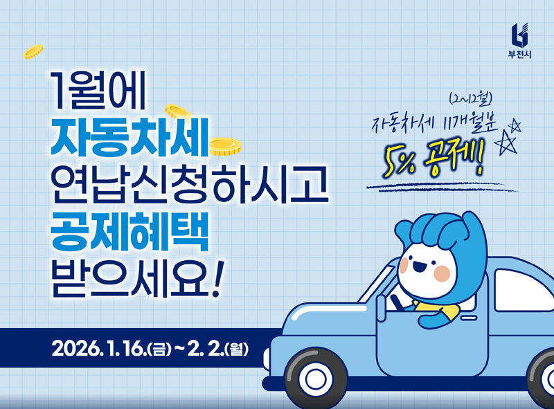 신청 대상은 1월 1일 기준 부천시에 등록된 자동차 소유자다. 연납을 희망하는 시민은 1월 16일부터 2월 2일까지 위택스를 이용하거나, 관할 구청 자동차세팀으로 전화 또는 방문해 신청하고 납부할 수 있다.